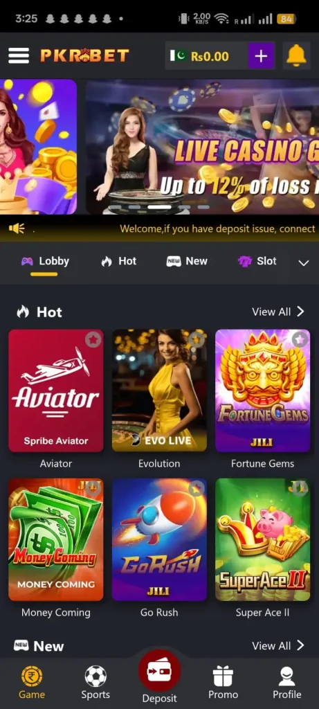 - After logging in, go to the “Deposit” or “Cashier” section. Choose from a variety of payment methods like UPI, Net Banking, Payam, or bank transfers. Enter the amount, confirm the transaction, and the funds will be credited to your PKRBET account almost instantly.